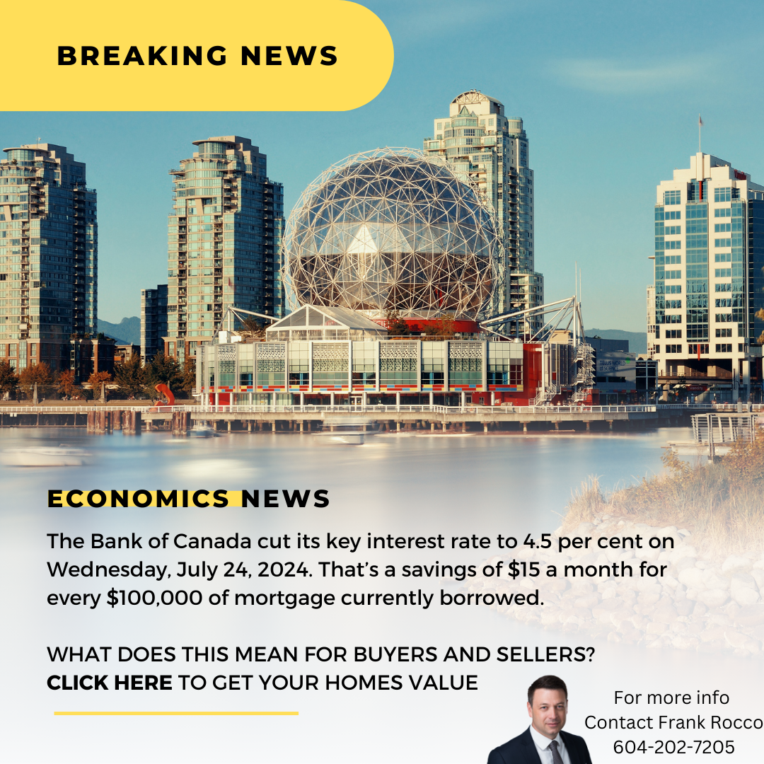 DID YOU KNOW THE BANK OF CANADA CUT ITS INTEREST RATE BY 4.5% IN JULY? CALL FRANK ROCCO TO DISCUSS WHAT THE MEANS FOR YOU AT 604-202-7205